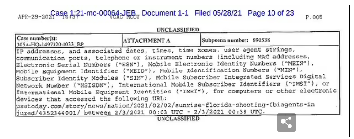 External Link FBI demands IP addresses, device IDs and phone numbers of EVERYONE who read online article…