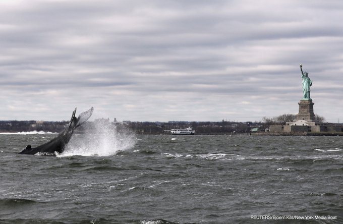External Link Epic: A humpback whale surfaces near the Statue of Liberty in this photo taken from a boat on New York Harbor…