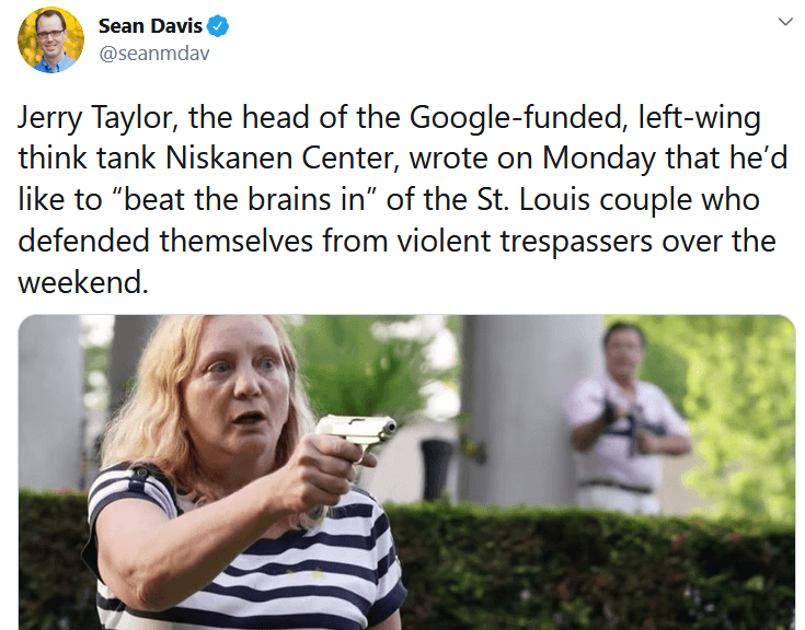 External Link Google-Funded ‘Think Tank’ President: ‘Beat St. Louis Homeowners Brains In’ There wasn't a lot of thinking involved in the composition of Jerry Taylor's tweet.